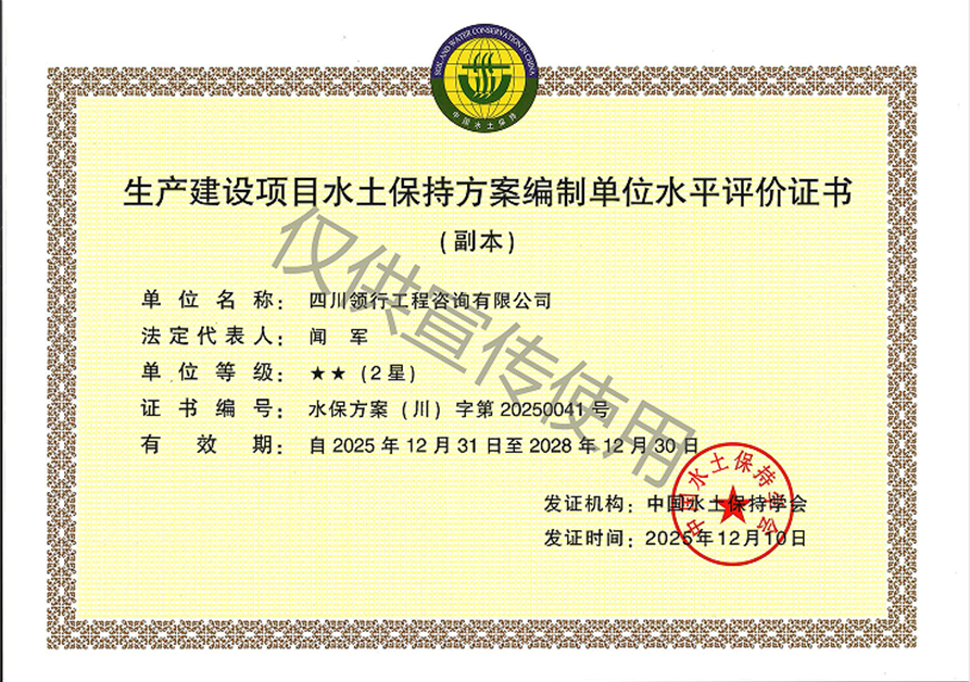 水土保持方案編制水平評(píng)價(jià)證書2星